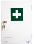 Prezentujemy Państwu ścienną apteczkę pierwszej pomocy - średnią, wykonaną z blachy stalowej malowanej farbą proszkową, wypalaną w kolorze białym.