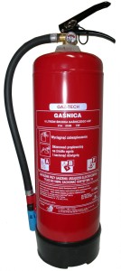 Profesjonalna gaśnica z płynem gaśniczym, zapewniająca skuteczne gaszenie pożarów bez uszkodzeń mienia.