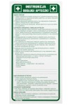 Profesjonalny znak BHP "Instrukcja obsługi apteczki", który zapewnia jasne wytyczne dotyczące prawidłowego korzystania z apteczki.