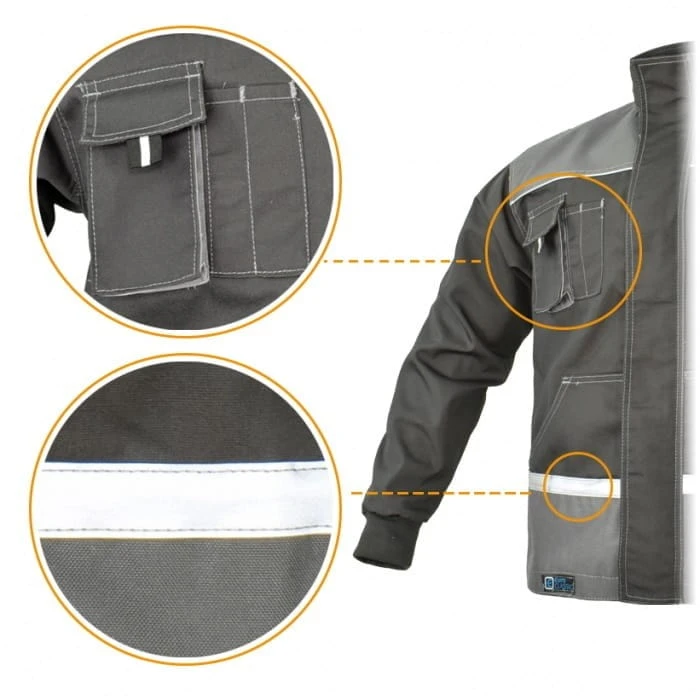 Kurtka ochronna EUROCLASSIC to produkt stworzony z myślą o profesjonalistach, którzy cenią sobie nie tylko estetykę, ale przede wszystkim funkcjonalność i trwałość. Wykonana z wytrzymałej tkaniny o wysokiej gramaturze, zapewnia długotrwałe użytkowanie nawet w trudnych warunkach. Dzięki zastosowaniu podwójnych szwów oraz licznych ryglówek, kurtka jest odporna na rozerwanie w miejscach szczególnie narażonych na uszkodzenia. Wzmocnienia na łokciach i barkach z tkaniny polyester Oxford 600D dodatkowo zwiększają jej wytrzymałość i odporność na ścieranie. Elementy odblaskowe poprawiają widoczność użytkownika, co jest kluczowe dla bezpieczeństwa pracy. Zastosowanie 6 funkcjonalnych kieszeni oraz oczek narzędziowych sprawia, że kurtka jest niezwykle praktyczna. Niska kurczliwość materiału oraz stabilność koloru gwarantują, że produkt zachowa swoje właściwości nawet po wielokrotnym praniu. EUROCLASSIC to idealny wybór dla firm poszukujących niezawodnych rozwiązań w zakresie odzieży ochronnej.