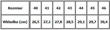 W przypadku potrzebnych innych rozmiarów prosimy o kontakt