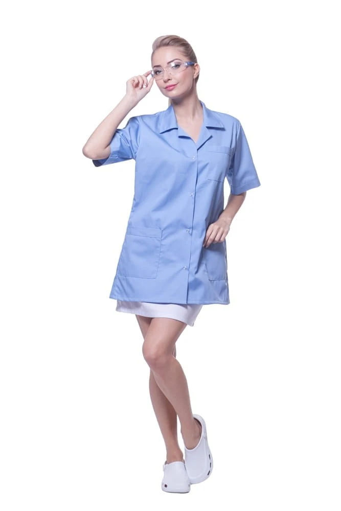 Bardzo praktyczny fartuch, uszyty z elanobawełny wysokiej jakośc.
