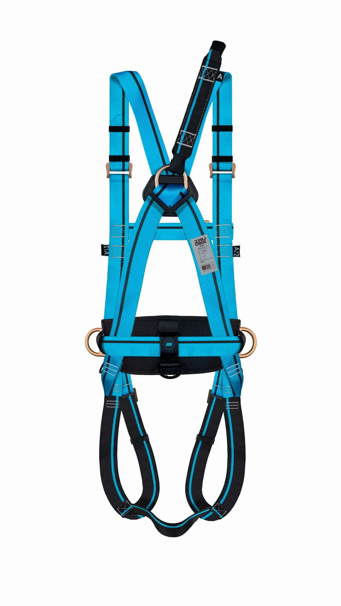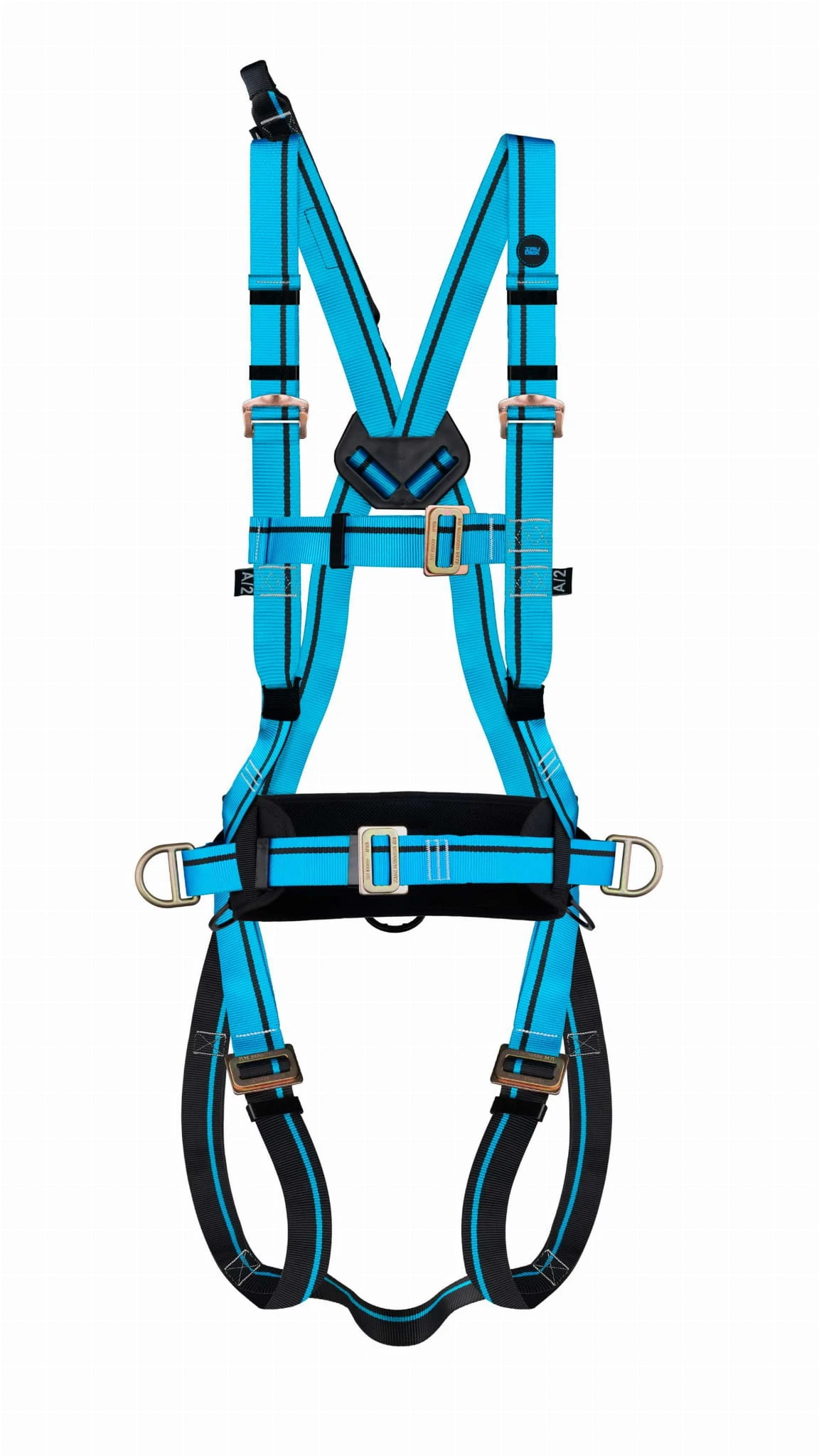Dodatkowo zastosowano tekstylne mocowanie mostkowe – elastyczne, lekkie i zgodne z normą EN 361 – co daje Ci pełną swobodę pracy z przodu i z tyłu.