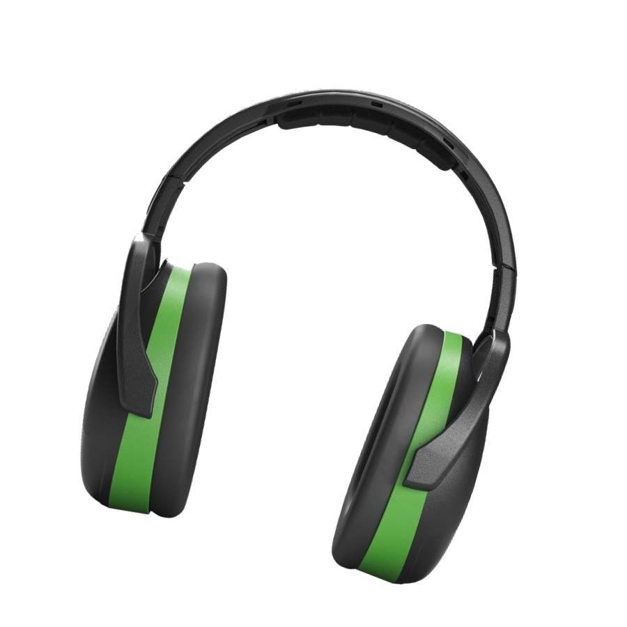 Zielone ochronniki (Klasa 1): tłumienie 26 dB, rekomendowane do przestrzeni o niskim i średnim natężeniu dźwięku, np. lekkie prace warsztatowe.