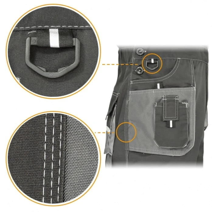 Spodnie ochronne EUROCLASSIC to synonim wytrzymałości i funkcjonalności. Wykonane z wysokiej jakości tkaniny, zapewniającej odporność na ścieranie i rozciąganie, są idealnym wyborem dla profesjonalistów. Dzięki potrójnym szwom i solidnym ryglówkom, spodnie te gwarantują długotrwałe użytkowanie nawet w najtrudniejszych warunkach. Elementy odblaskowe zwiększają bezpieczeństwo, a liczne kieszenie, w tym wzmocnione kieszenie kolanowe, oferują praktyczne rozwiązania do przechowywania narzędzi i akcesoriów. Szerokie szelki i regulacja pasa zapewniają komfort noszenia, a niska kurczliwość i stabilność koloru sprawiają, że spodnie zachowują swój wygląd nawet po wielokrotnym praniu.