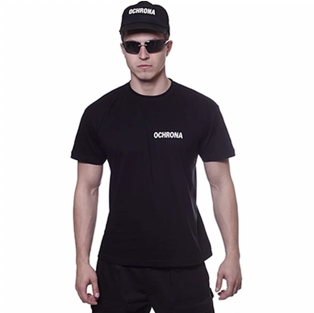 Zapewnij swoim pracownikom profesjonalną identyfikację dzięki koszulce T-shirt z nadrukiem "OCHRONA". Wykonana w 100% z wysokogatunkowej bawełny o dużej gramaturze, gwarantuje komfort noszenia i przewiewność, co jest kluczowe podczas wielogodzinnych dyżurów. Czarny kolor jest praktyczny i nie traci barwy w praniu.