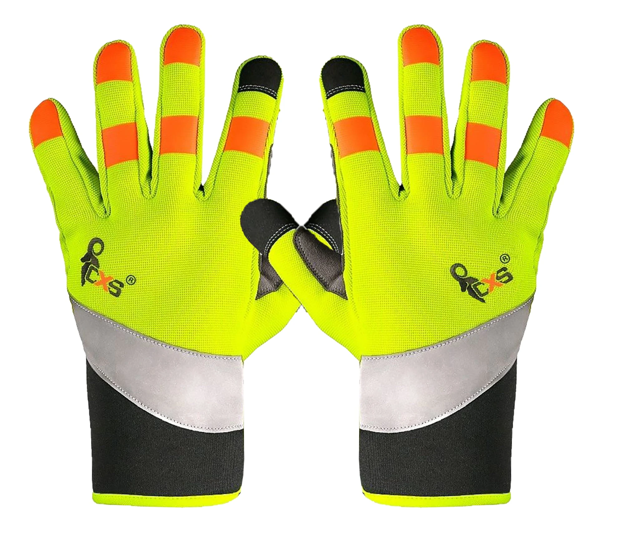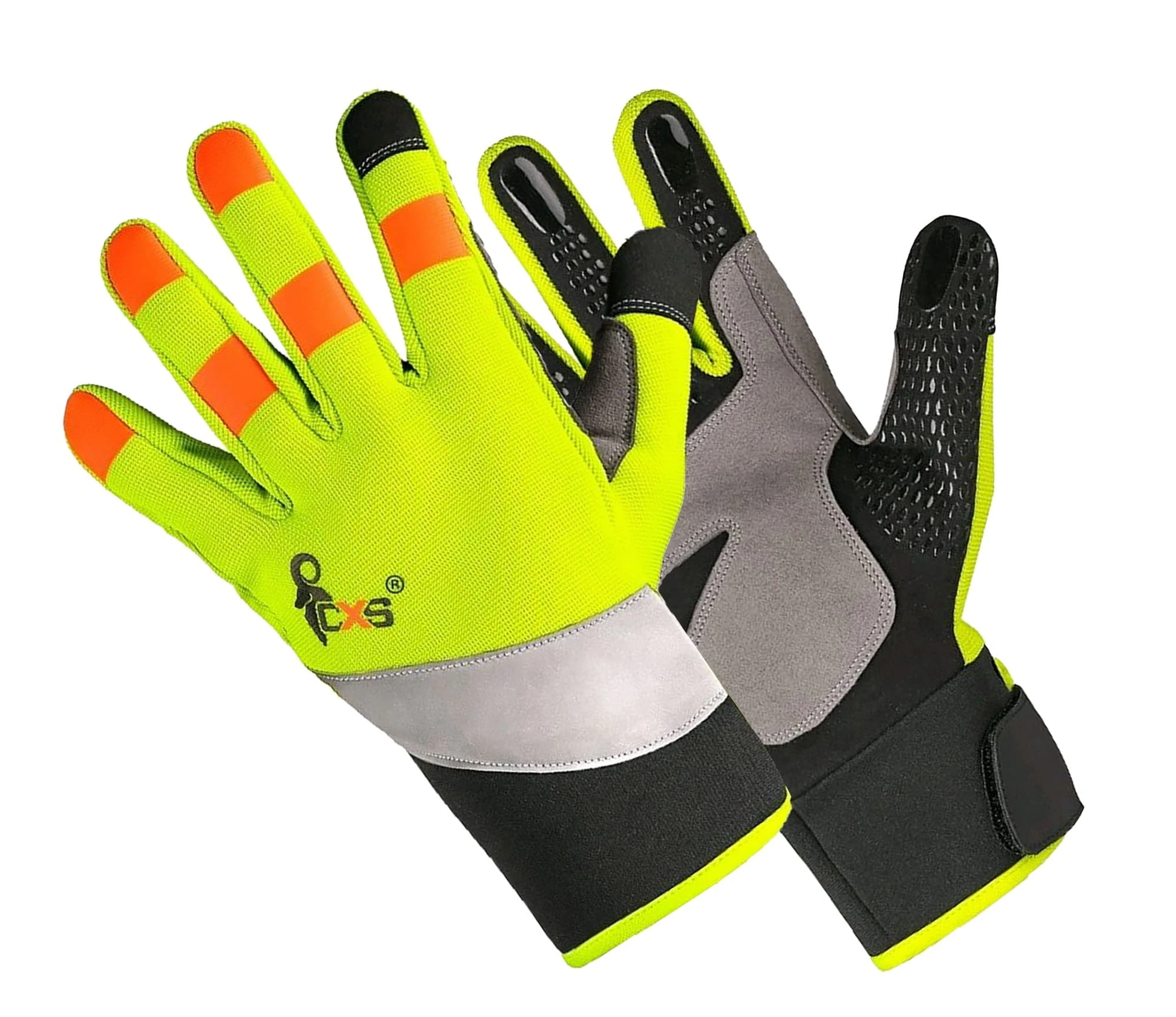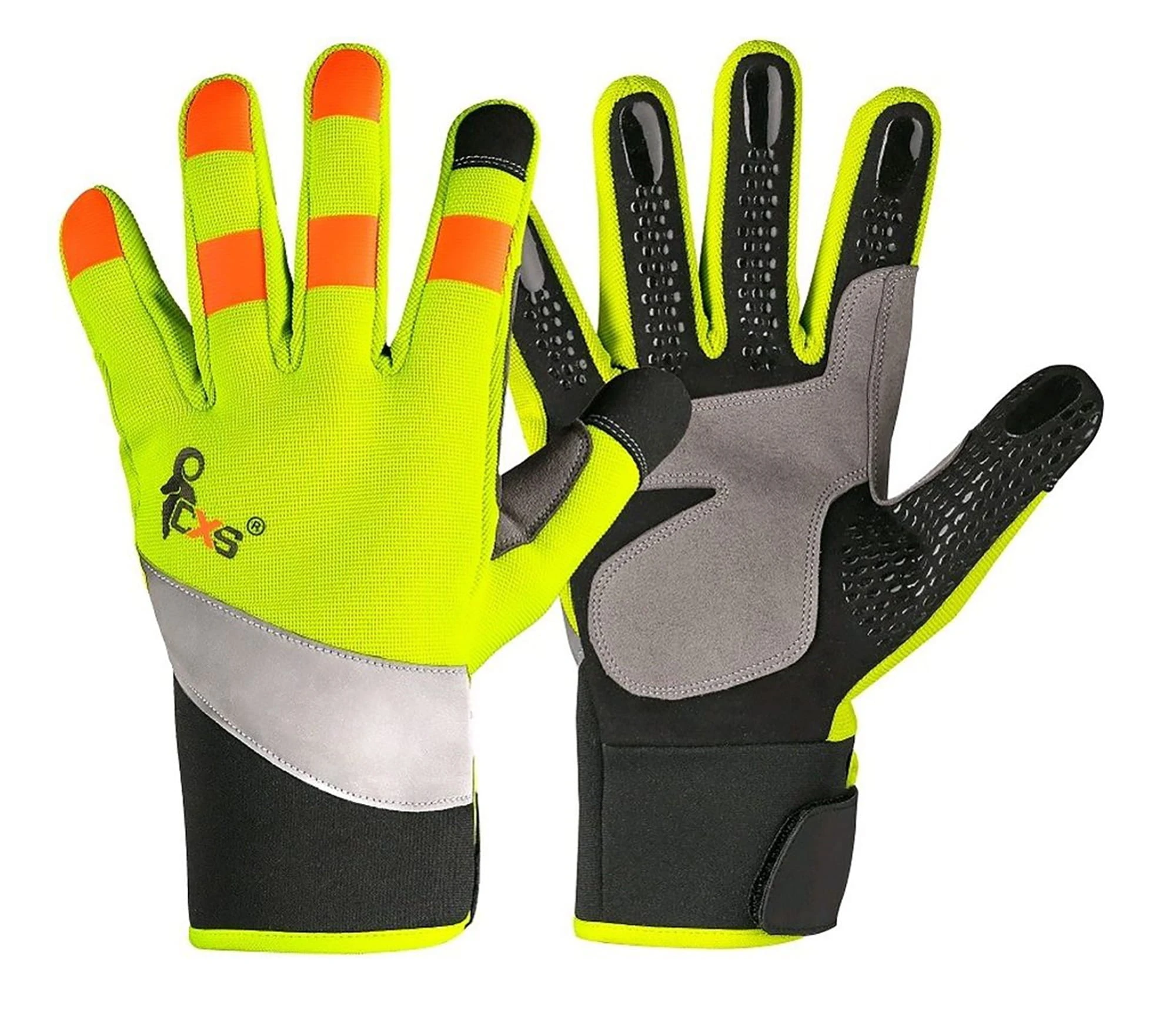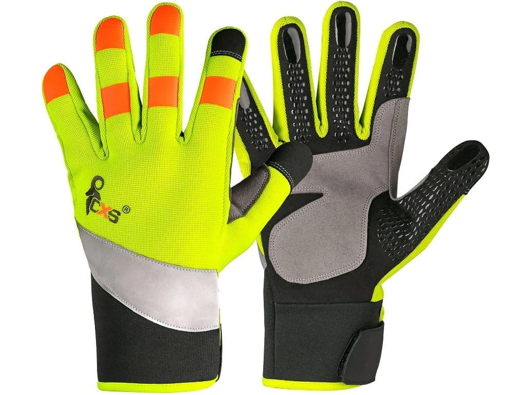 rękawice z taśmą odblaskową i aplikacjami silikonowymi na palcach dla lepszego chwytu i manipulacji
