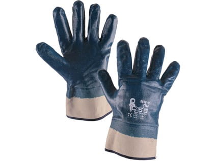 Rękawice robocze CXS Pela to wytrzymały model wykonany ze stuprocentowej bawełny, w całości powlekany ciężkim nitrylem w kolorze granatowym. Charakteryzują się zwiększoną odpornością na smary, oleje, tłuszcze i węglowodory. Wyposażone w dzianinowy ściągacz, zapewniają pewny chwyt i komfort pracy w przemyśle mechanicznym oraz budownictwie. Produkt jest bezpieczny dla środowiska dzięki biodegradacji nitrylu.