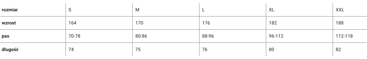 - Dostępne rozmiary: S, M, L, XL, XXL