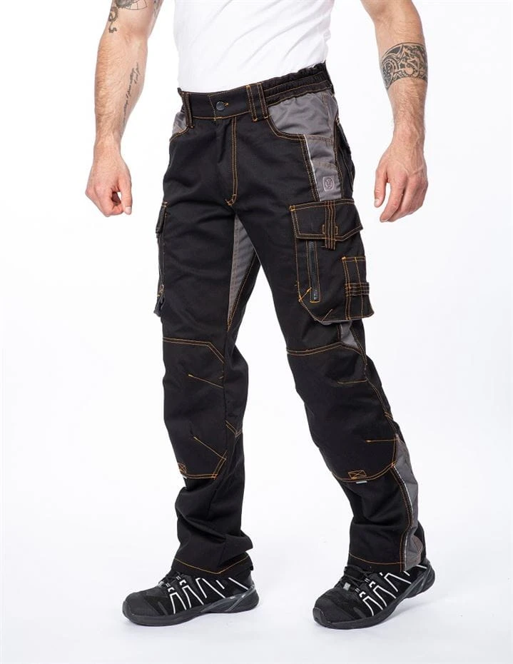 Dzięki elastycznej talii spodnie doskonale dopasowują się do sylwetki, zapewniając swobodę ruchów podczas pracy. Dodatkowo, wielofunkcyjne kieszenie pozwalają na przechowywanie narzędzi i drobnych akcesoriów, co sprawia, że spodnie są niezastąpione w codziennej pracy.
