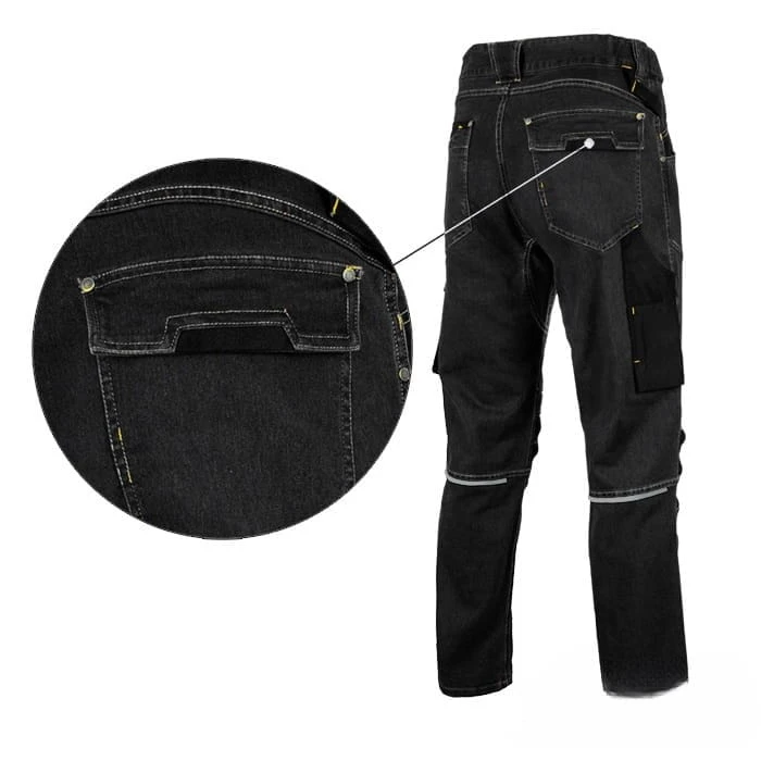 Spodnie Robocze Jeansowe STRETCH Czarne 340g - 11 Kieszeni, Odblaskowe