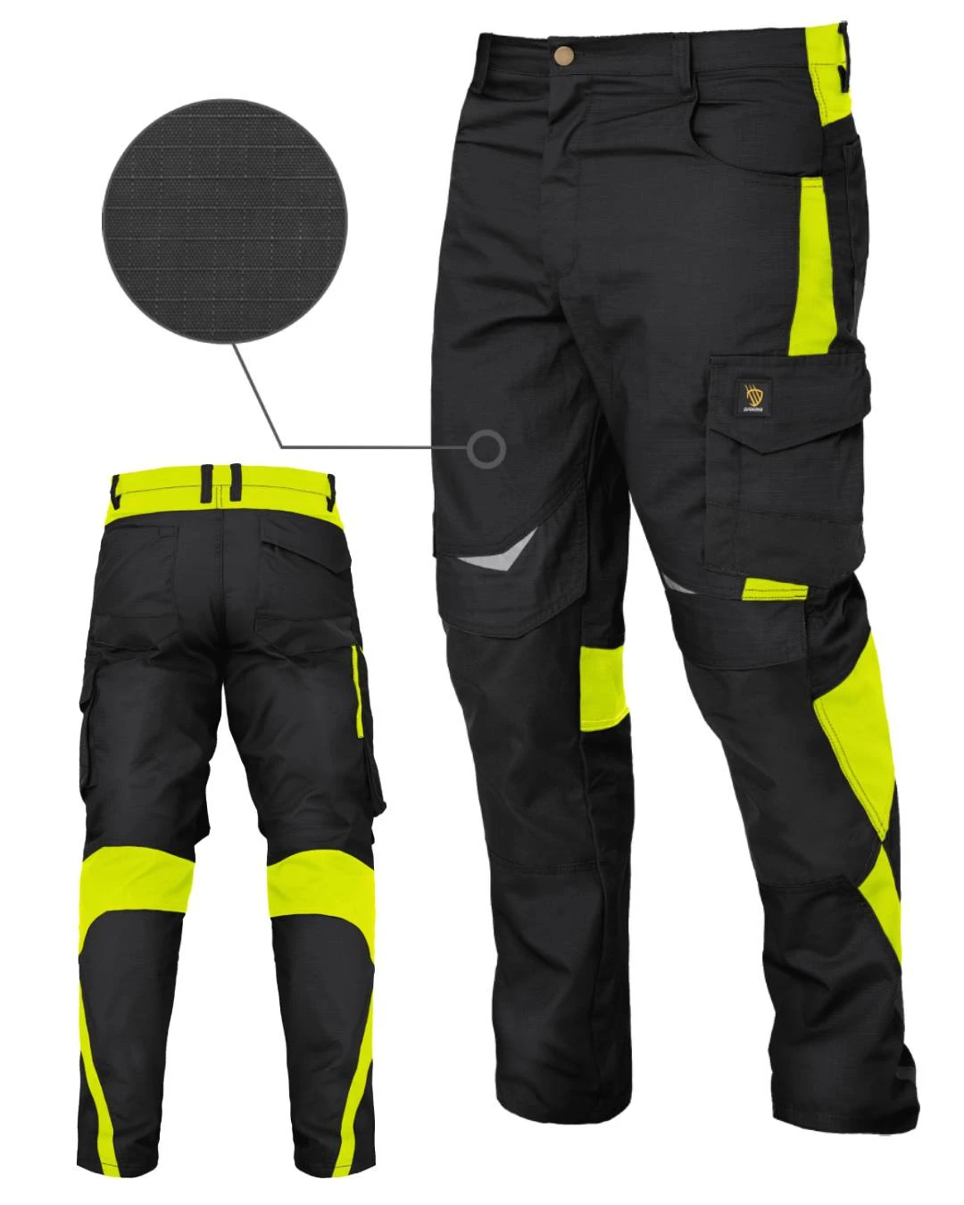 Wzmocnienia i ochrona: Tkanina RIP STOP jest odporna na rozerwania, a dodatkowe wzmocnienia OXFORD na kolanach i kieszeniach sprawiają, że spodnie są jeszcze bardziej wytrzymałe.