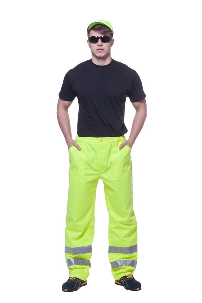 W naszej ofercie znajdą Państwo spodnie robocze z pasami ostrzegawczymi.