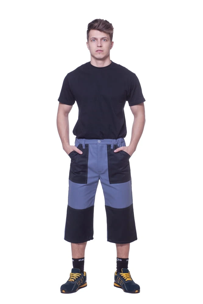 Spodnie robocze 3/4 All to idealny wybór na ciepłe dni, zapewniający doskonałą cyrkulację powietrza. Wykonane z trwałej tkaniny o gramaturze 280 g/m2 (65% poliester, 35% bawełna), zachowują stabilność koloru i rozmiaru po praniu. Wyposażone w 4 praktyczne kieszenie, elastyczną gumę w pasie oraz dodatkowe wzmocnienia na kolanach. Produkt spełnia normę EN 340 dla odzieży ochronnej.