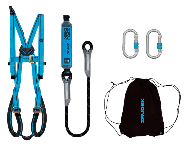 APENINOS to gotowy zestaw do pracy na wysokości, zapewniający pełną ochronę przed upadkiem w jednym komplecie. Obejmuje uprząż, absorber energii z liną, dwa stalowe karabinki oraz torbę transportową – wszystkie elementy dobrane pod kątem wytrzymałości i kompatybilności.