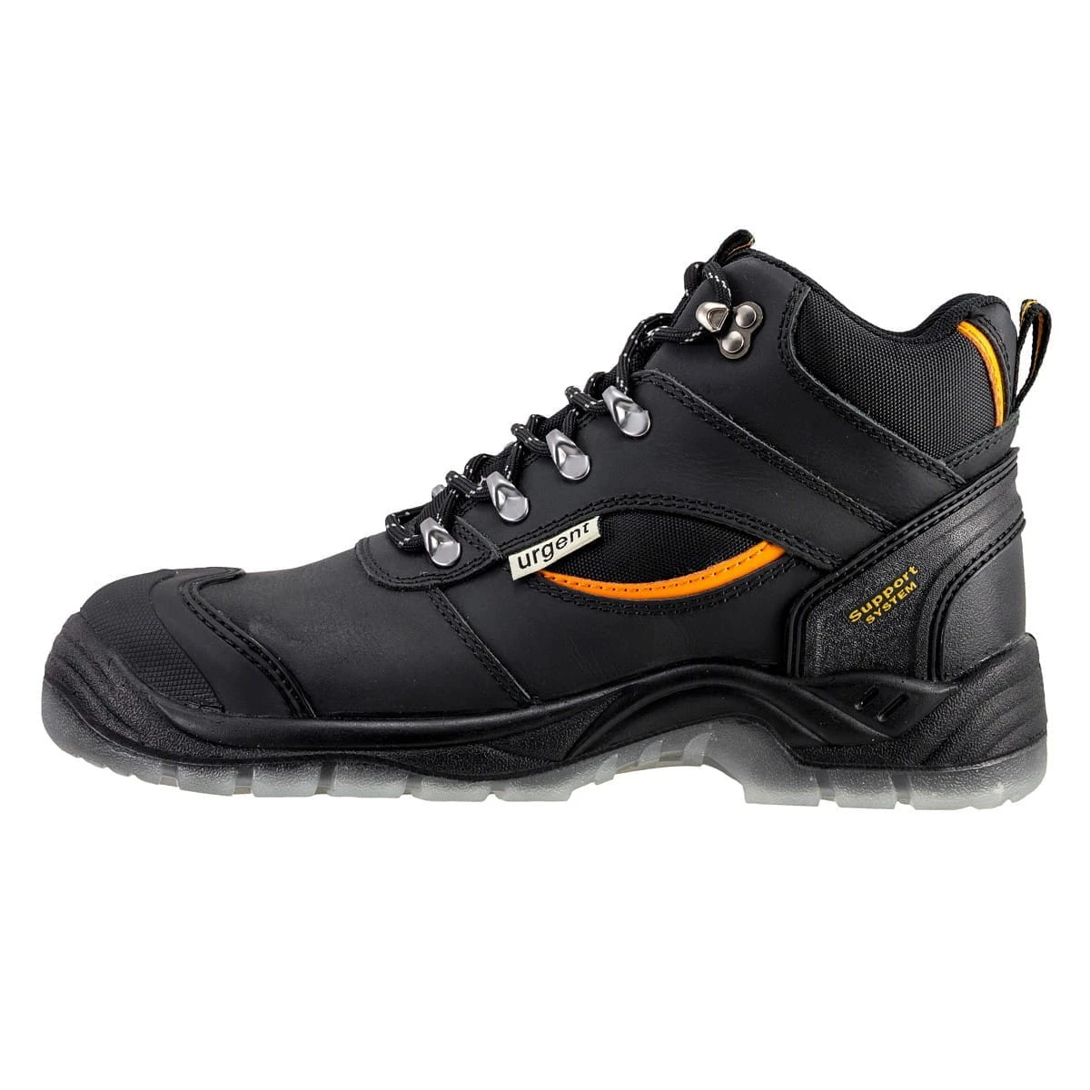 Trzewiki robocze Urgent 126 S1 to wysokiej jakości obuwie ochronne wykonane z grubej skóry cielęcej (2,2 mm). Wyposażone w metalowy podnosek oraz antyelektrostatyczną podeszwę zewnętrzną z przezroczystego TPU, która nie rysuje podłoża i zachowuje elastyczność w niskich temperaturach. Wewnętrzna podeszwa z miękkiego PU oraz anatomiczna wkładka zapewniają komfort pracy.