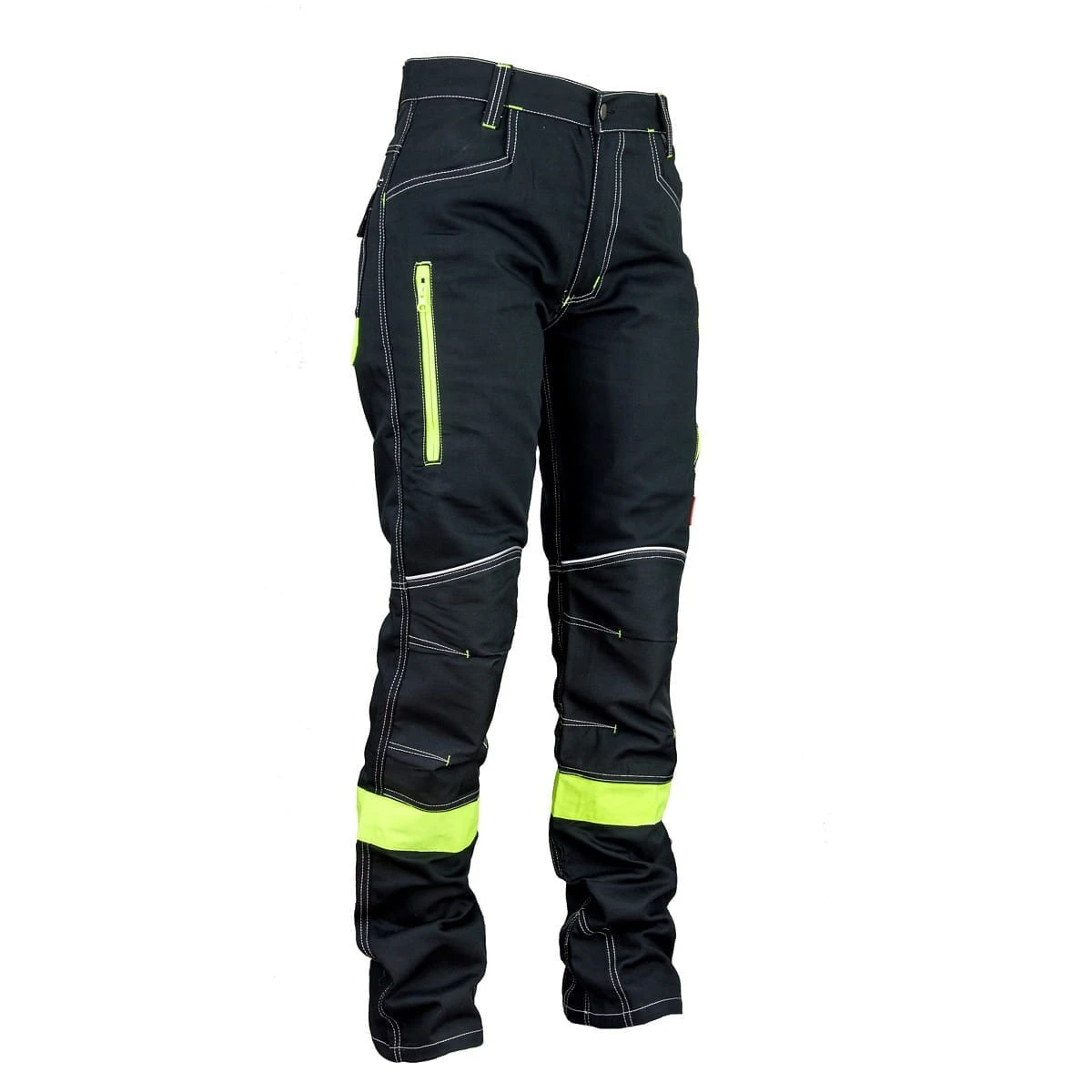URGENT 717 Spodnie robocze do pasa – czarne, elementy odblaskowe, 6 kieszeni