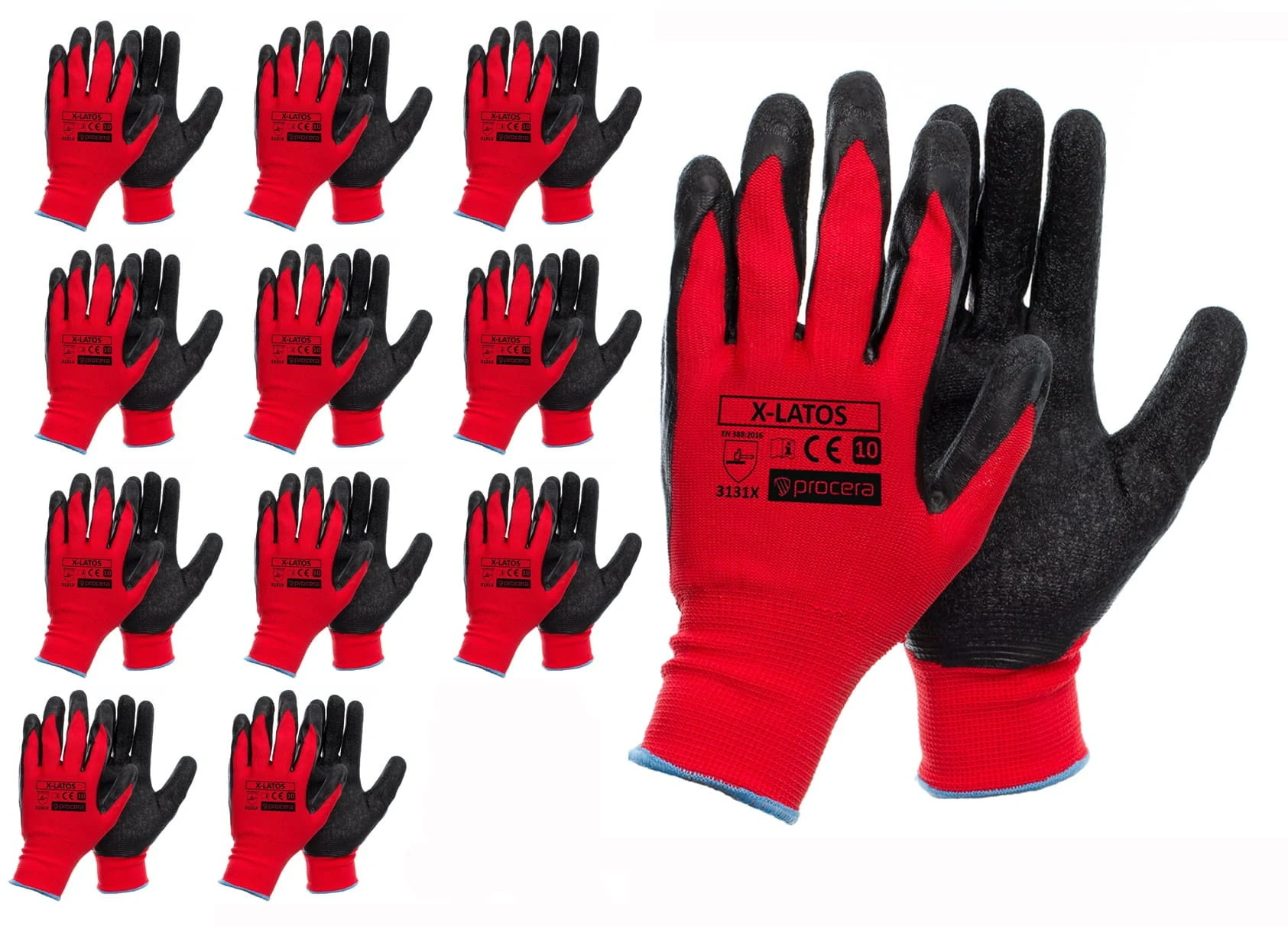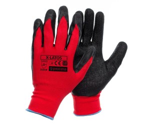 X-LATOS Rękawice robocze – czerwony poliester, powleczenie lateksem