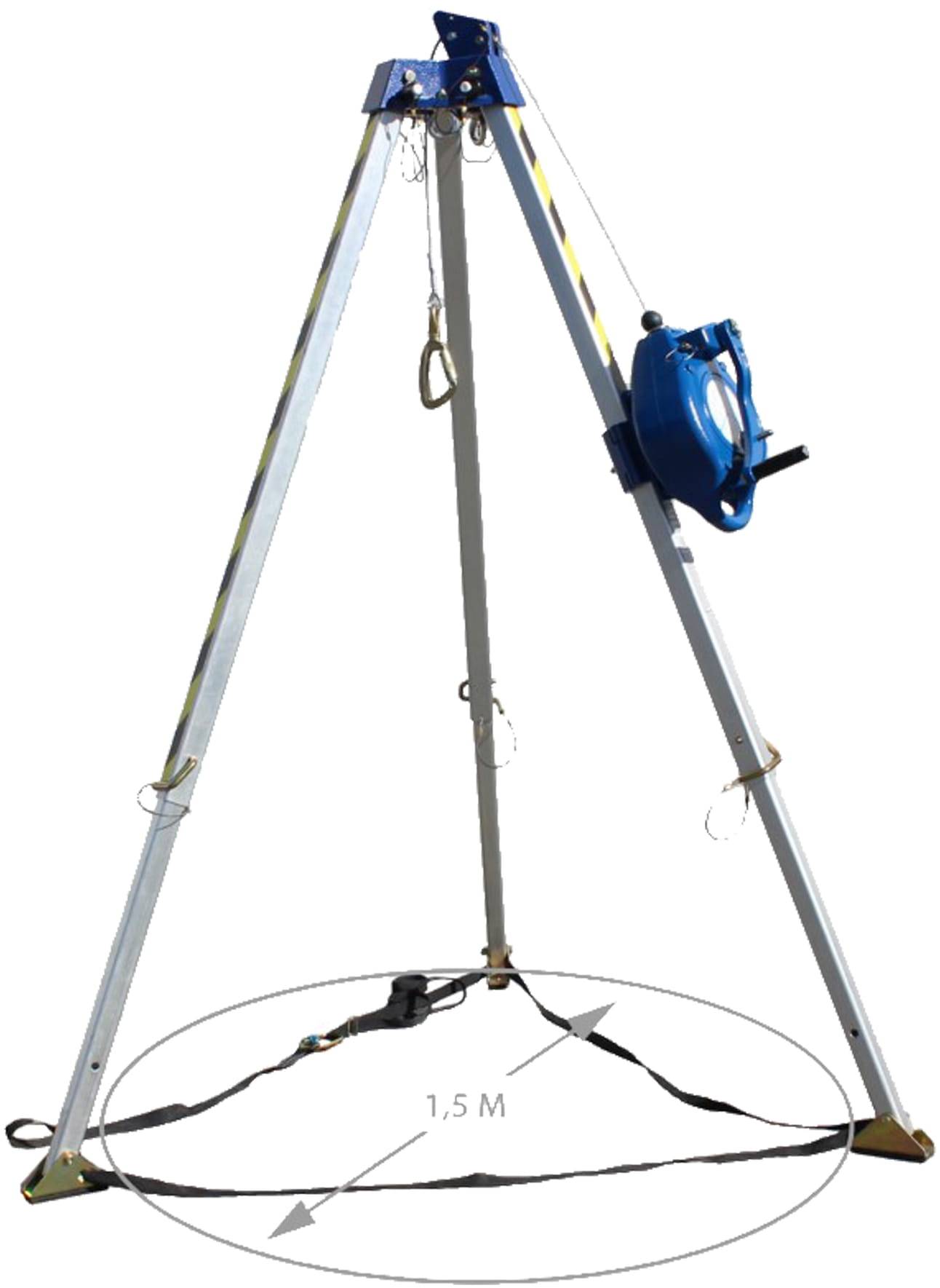 Zestaw asekuracyjny Irudek KIT TRIP 11 to profesjonalne rozwiązanie do pracy w pionie i przestrzeniach zamkniętych. Zawiera aluminiowy trójnóg TRIP1 o udźwigu 500 kg, urządzenie samohamowne Koala R15 z 15-metrową liną stalową i funkcją retrievera oraz dedykowaną płytę mocującą. System zapewnia natychmiastową reakcję w razie upadku i umożliwia szybką ewakuację pracownika.